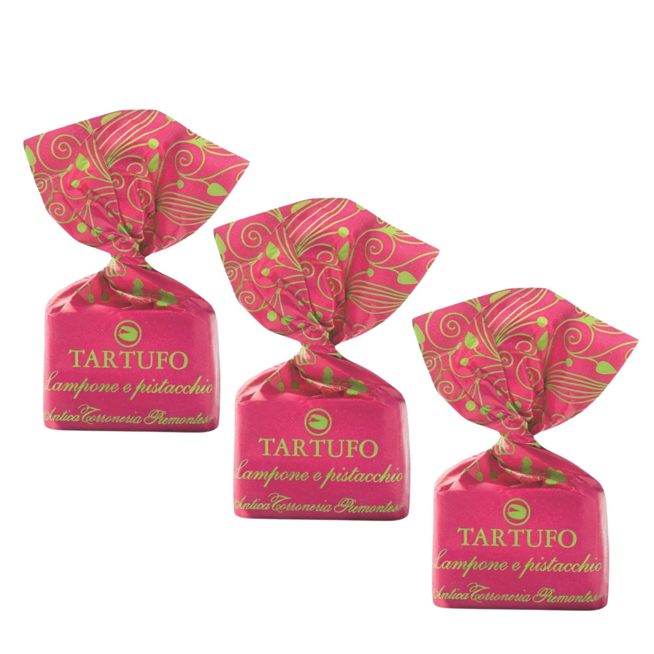 Die Tartufi Dolci Himbeere Pistazie von Antica Torroneria Piemontese vereinen die Intensität der piemontesischen Haselnuss IGP mit dem feinen Geschmack von Pistazien und der fruchtigen Frische gefriergetrockneter Himbeeren. Diese besondere Kombination sorgt für eine harmonische Balance zwischen cremigem Schmelz, nussiger Tiefe und einer leicht säuerlichen Beeren-Note. Jeder Tartufo ist einzeln verpackt und eignet sich perfekt als elegante Begleitung zu Kaffee oder Tee, als Dessertpraline oder als Geschenk für Genießer.
