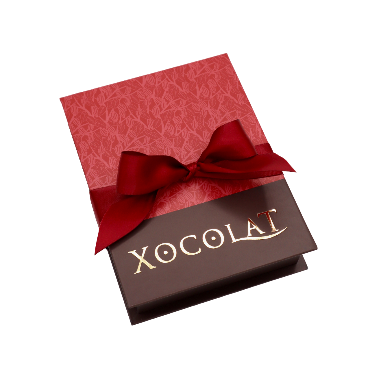 Eine handgefertigte Bonbonniere, veredelt mit dem klassischen Xocolat Rankenmuster. Im Inneren befinden sich 12 Stück feinstes Konfekt aus der Xocolat Manufaktur, Wien.