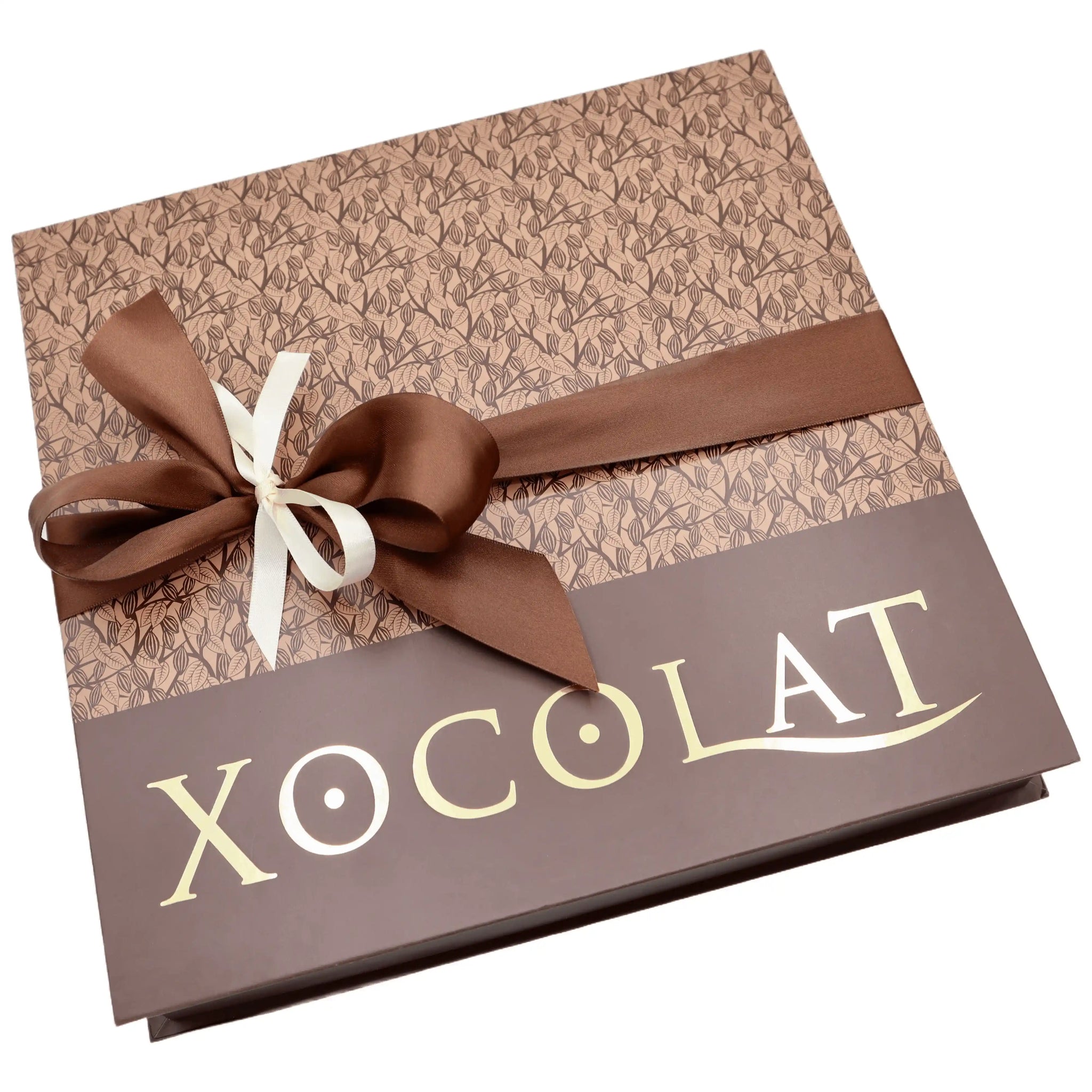 Eine handgefertigte Bonbonniere, veredelt mit dem klassischen Xocolat Rankenmuster. Im Inneren befinden sich 64 Stück feinstes Konfekt aus der Xocolat Manufaktur, Wien.