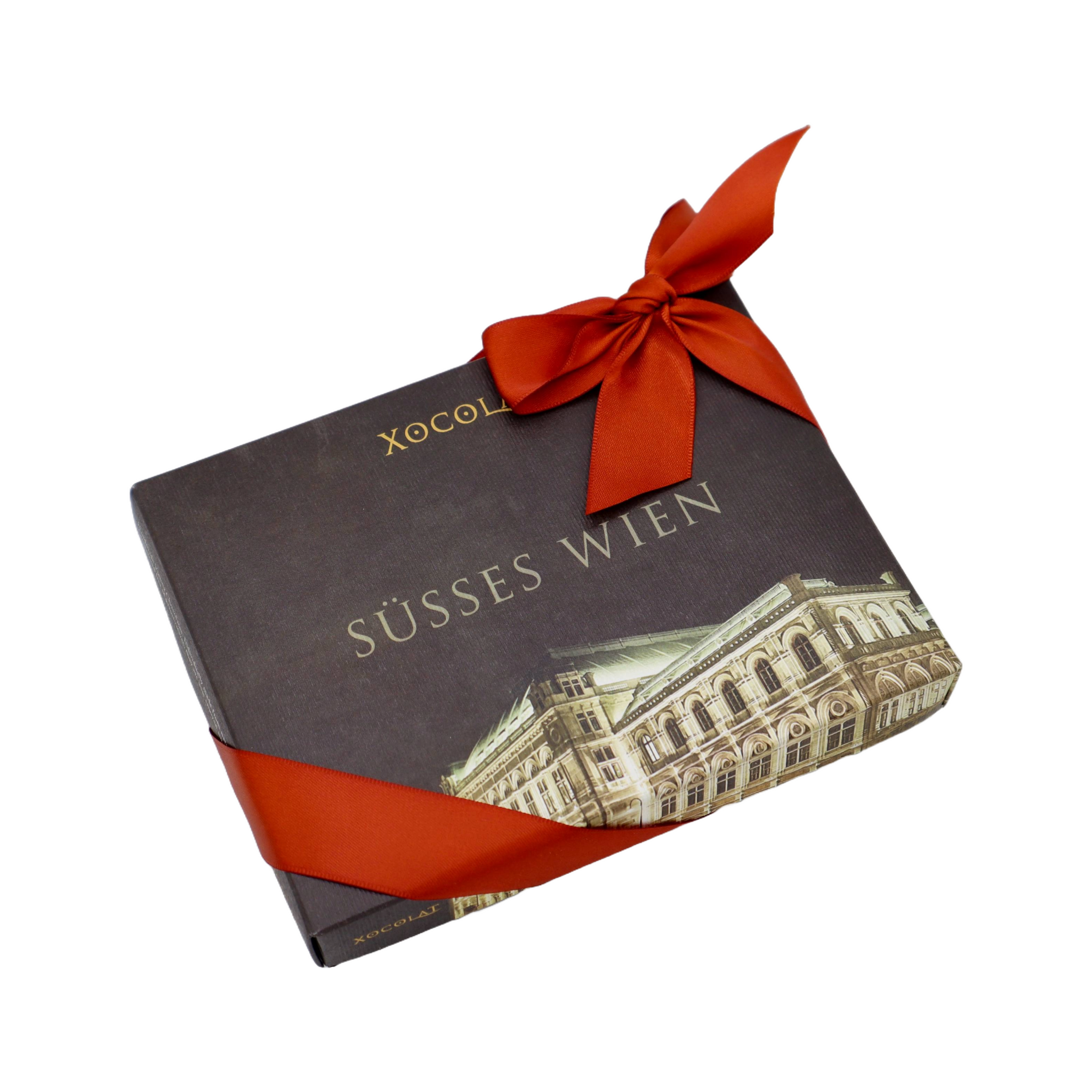 Ein süßer Gruß aus der Genusshauptstadt Wien. Die Verpackung ziert eine klassische Darstellung der Wiener Staatsoper. Im Inneren befinden sich 12 Stück Trüffel und Konfekt aus der Xocolat Manufaktur, Wien.