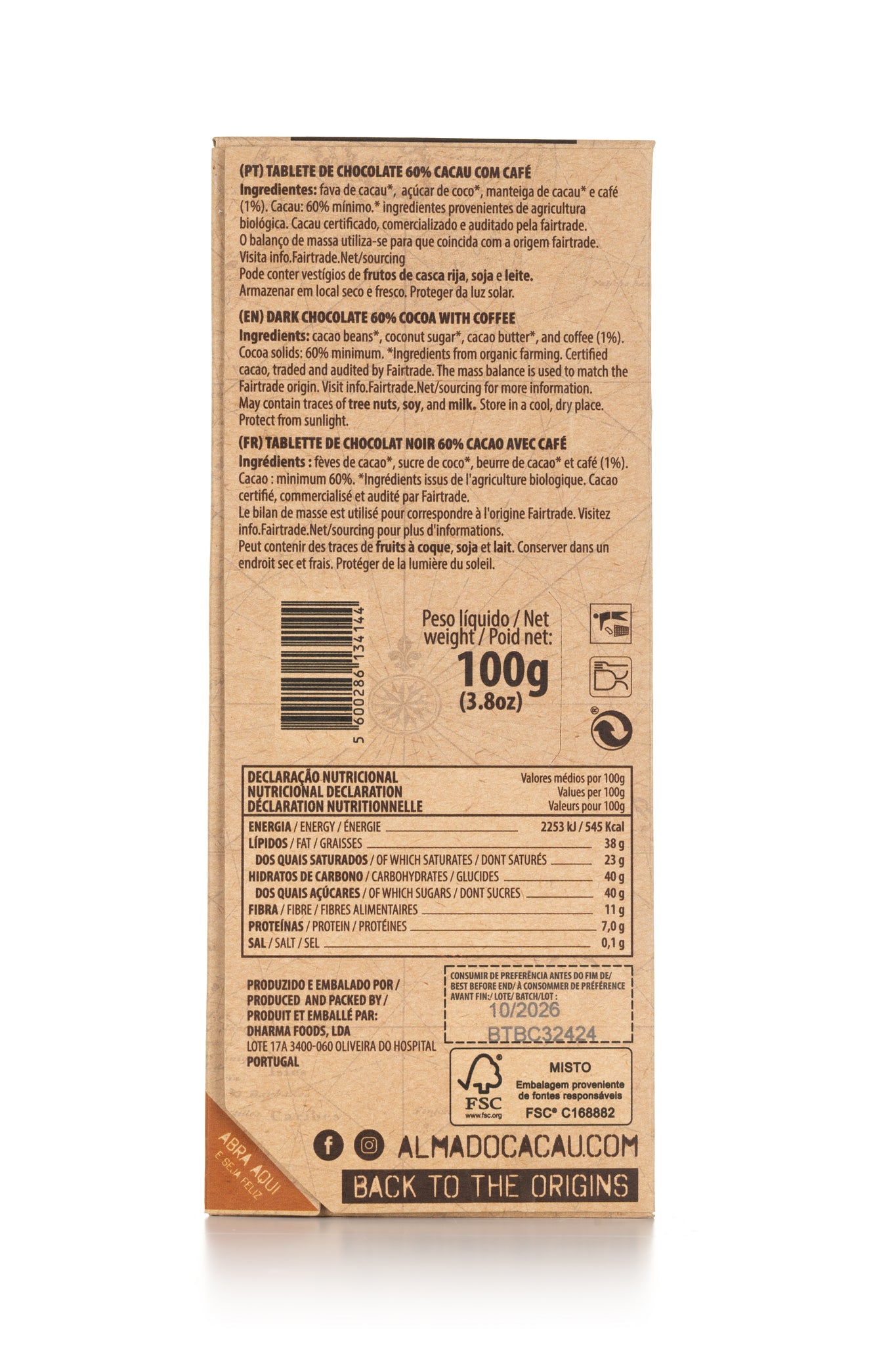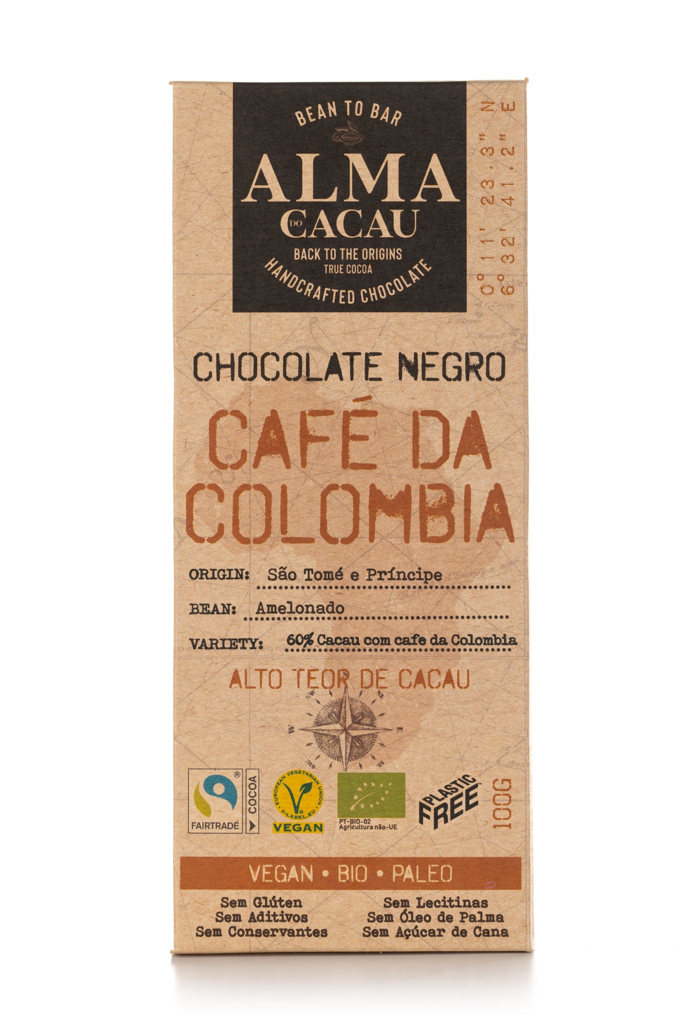 Aromatische dunkle Schokolade mit 60% Kakaogehalt und kolumbianischem Edelkaffee.