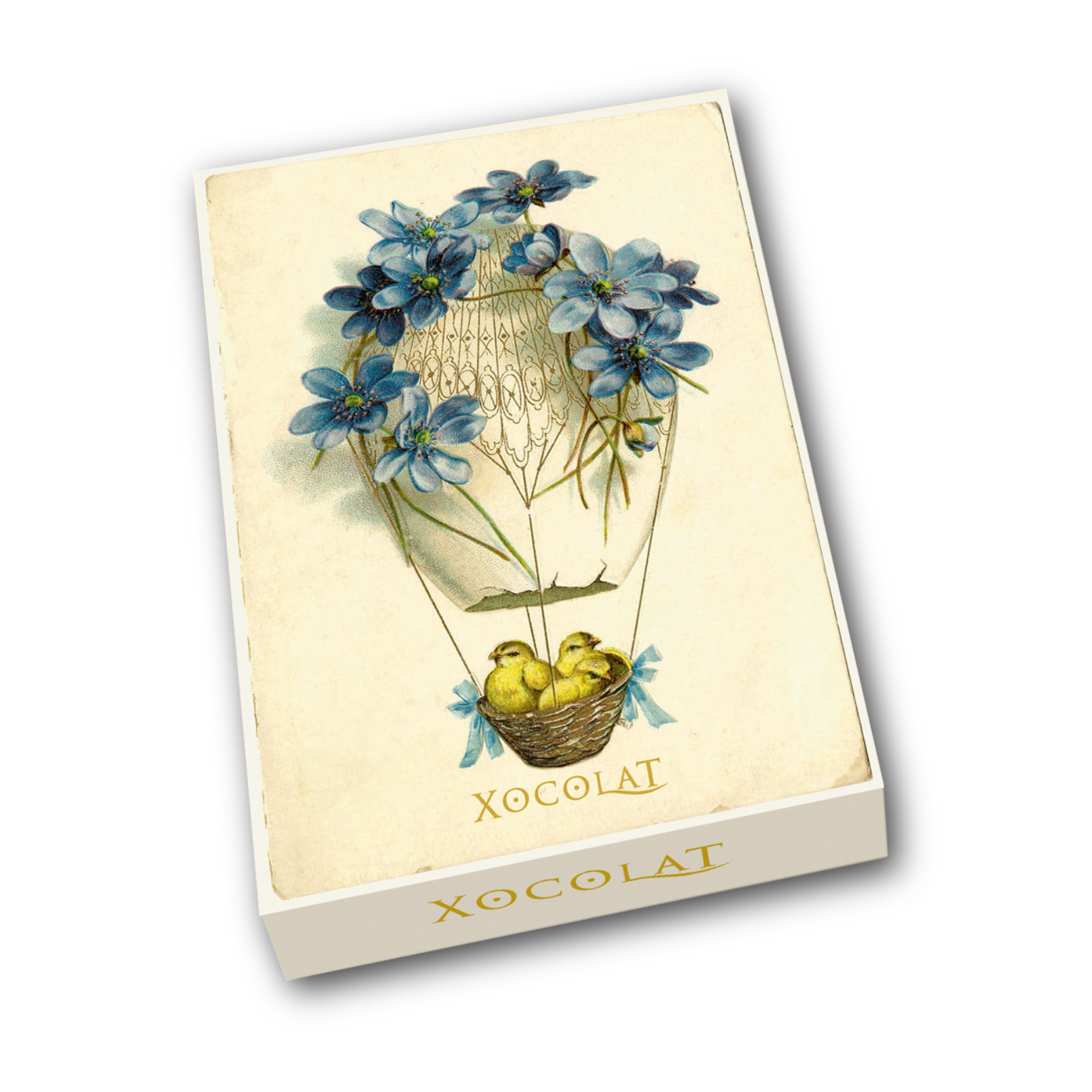Oster-Bonbonniere mit viktorianischem Motiv, gefüllt mit vier optimal frischen Trüffeln und feinstem Konfekt aus dem Xocolat-Sortiment.