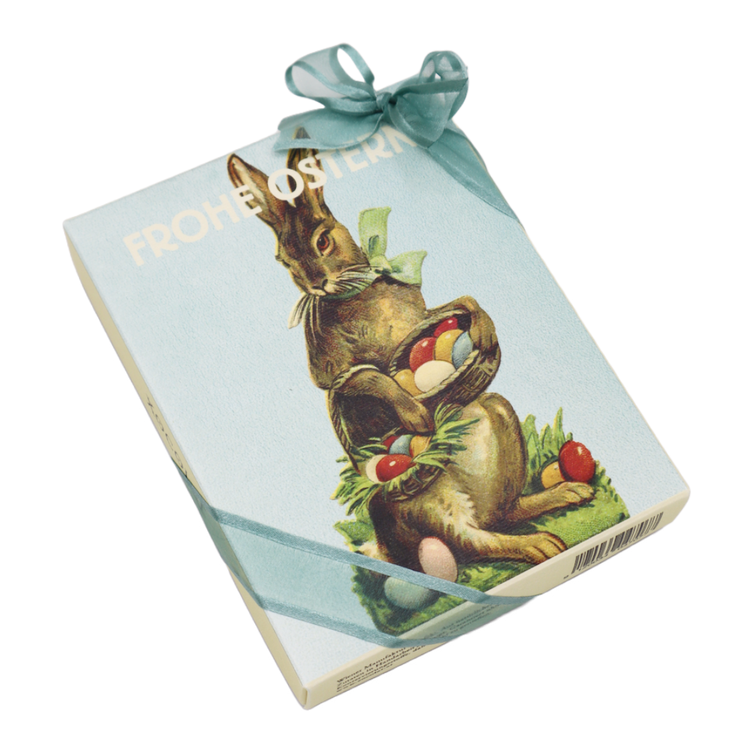 Oster-Bonbonniere mit klassischem Motiv, gefüllt mit 12 Stück frischem Konfekt aus der Xocolat Manufaktur.