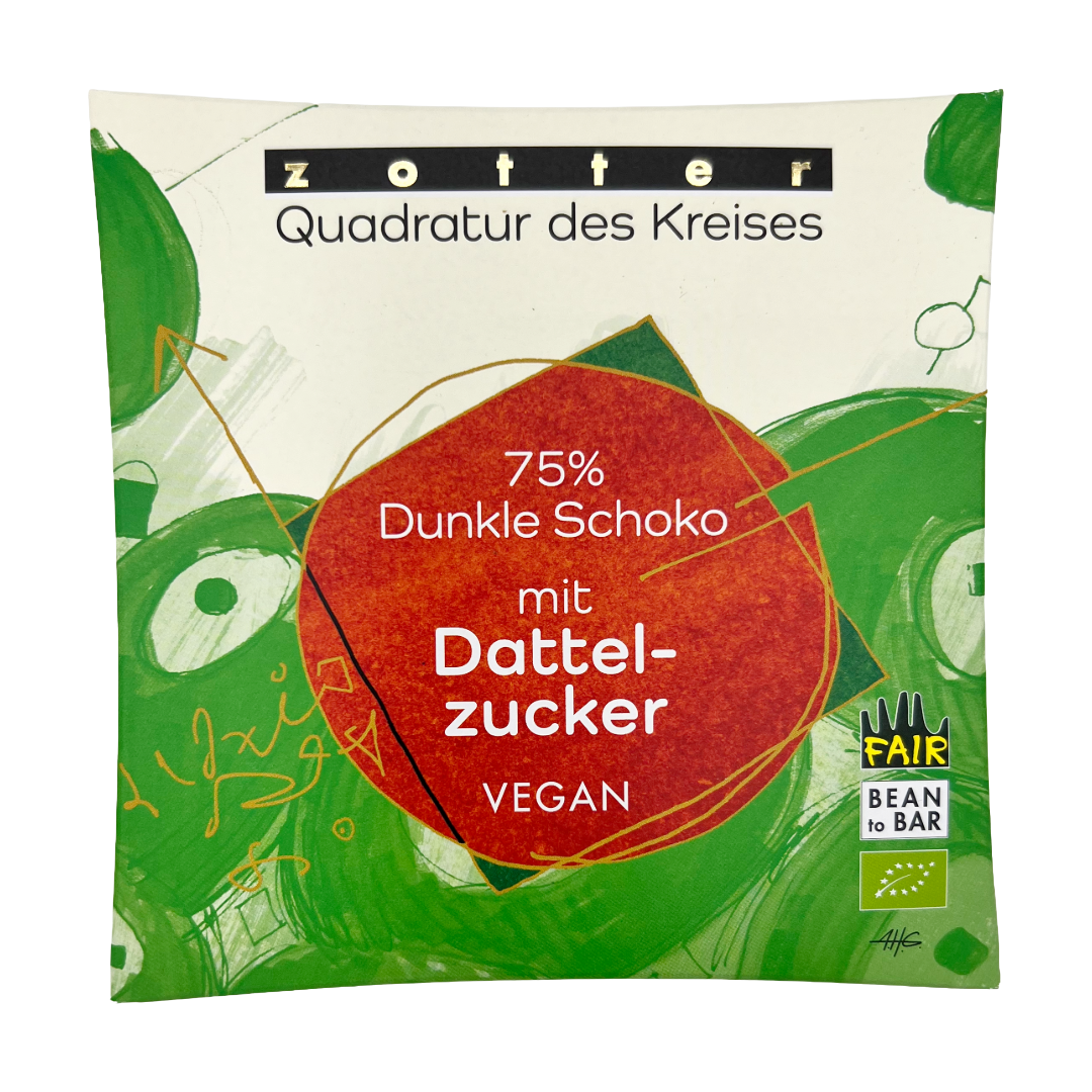 | Die Quadratur des Kreises Schokoladen aus der Zotter Schokoladen-Manufaktur in der Steiermark liefern eine Serie alternativ gesüßter Schokoladen. Hierbei kommt die Süße aus Datteln oder Ahorn, bei manchen Tafeln verzichtet man komplett auf Zuckerzugabe. |